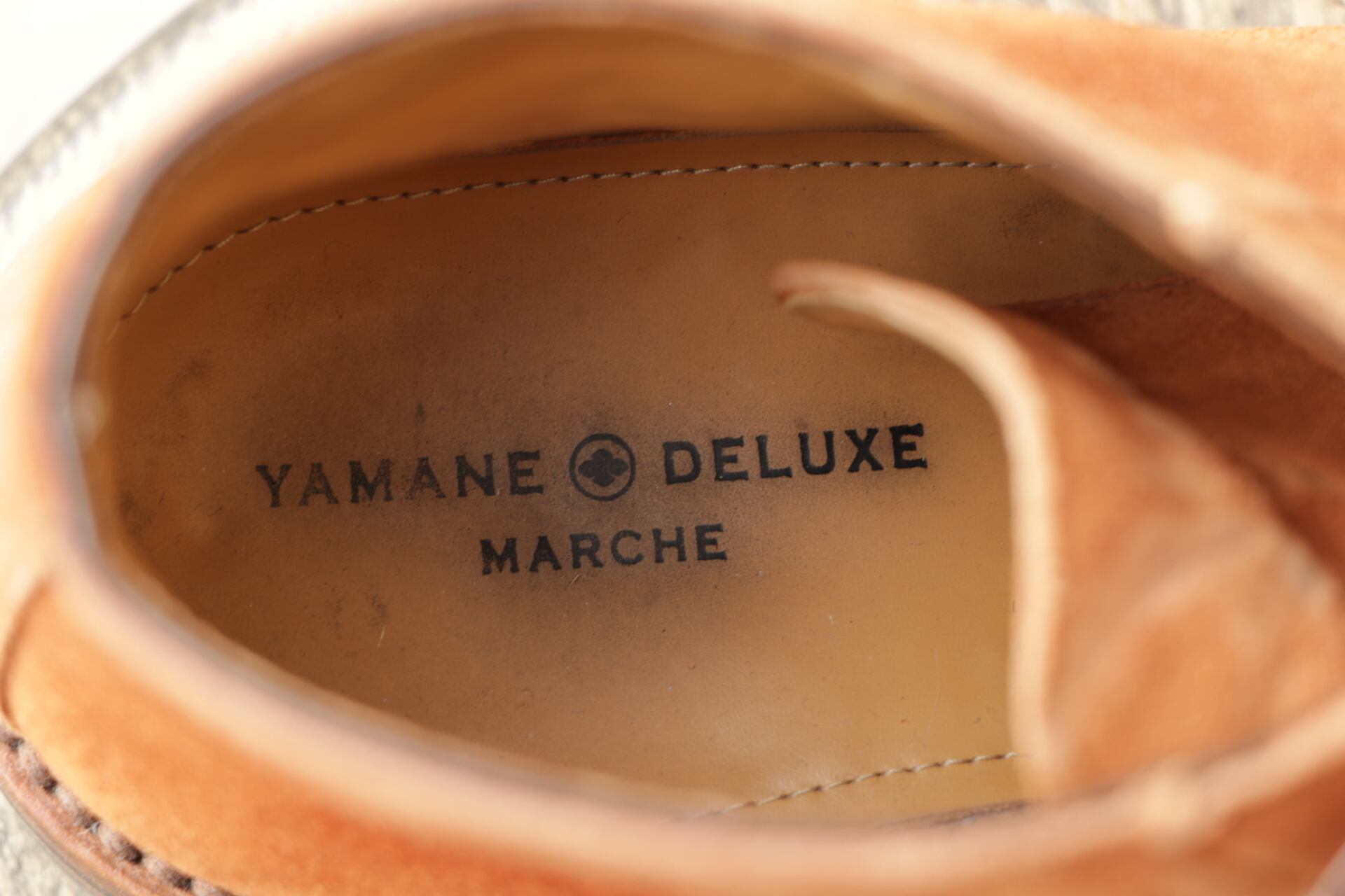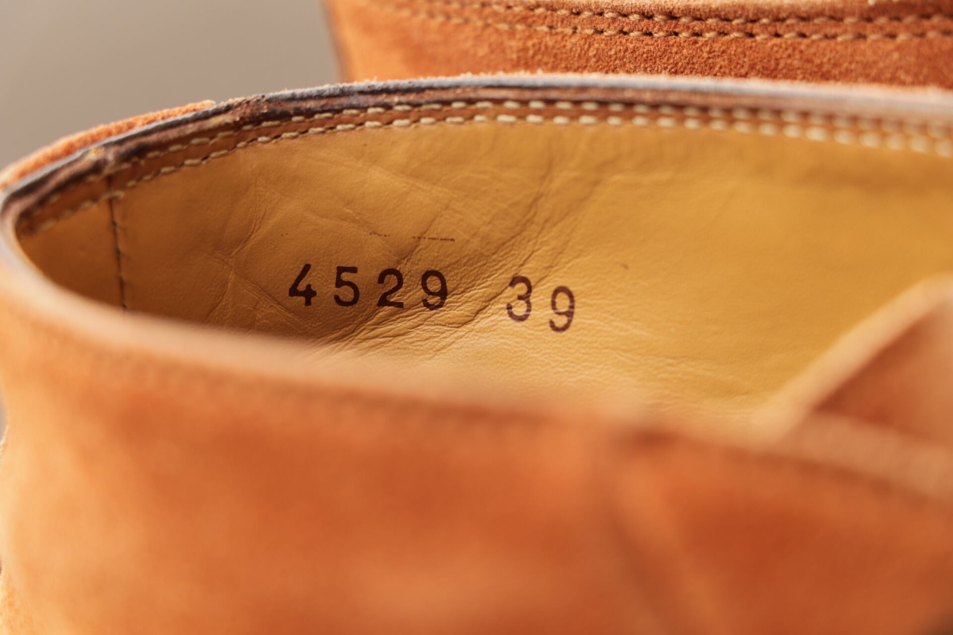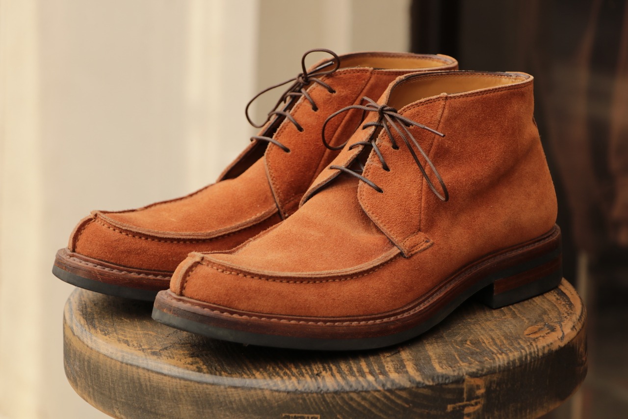 非常にきれいなオレンジ色のスエードで、有名メーカーが製造を担当することが多く、こちらは作りからイタリアメーカーの製造かと思われます。