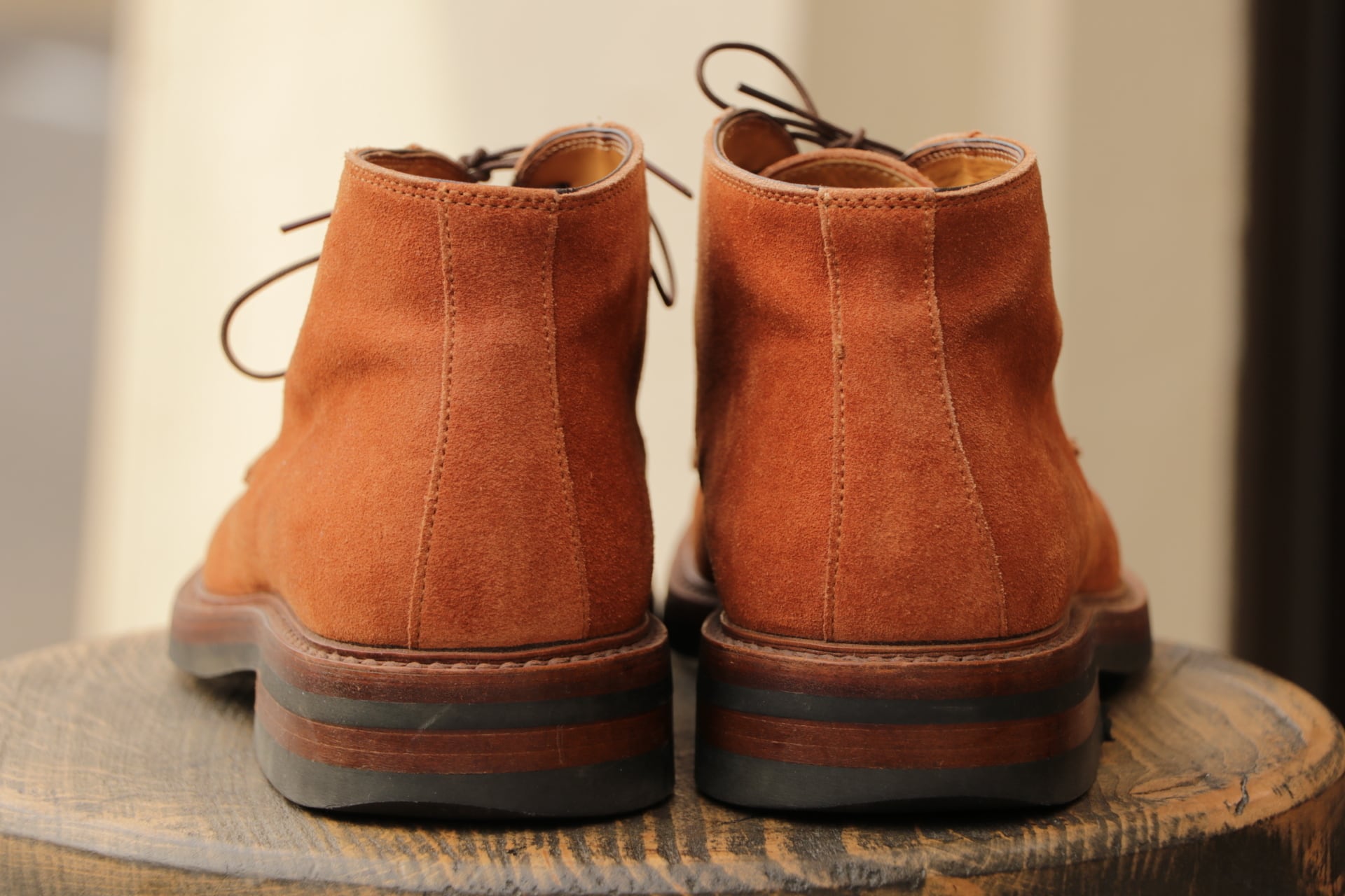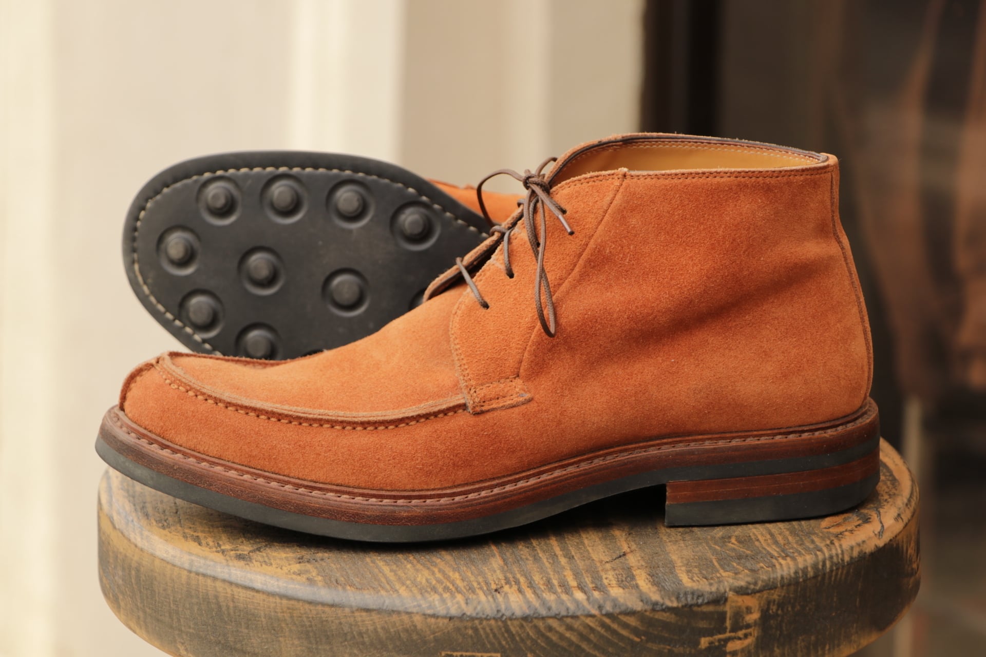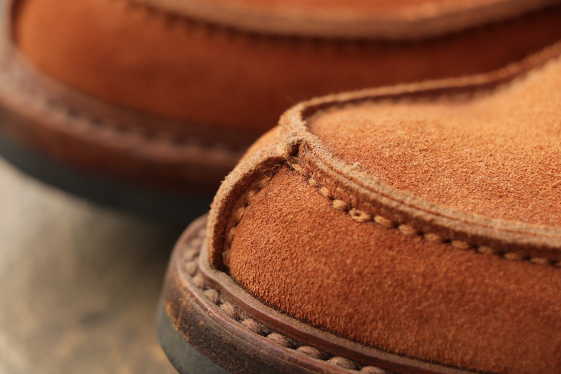 非常にきれいなオレンジ色のスエードで、有名メーカーが製造を担当することが多く、こちらは作りからイタリアメーカーの製造かと思われます。